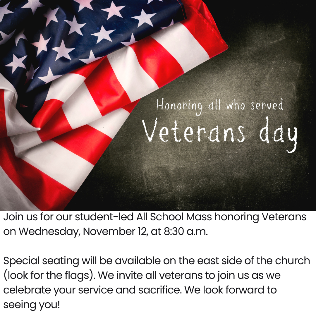 Join us for our student-led All School Mass honoring Veterans on Wednesday, November 12, at 8:30 a.m. Special seating will be available on the east side of the church (look […]